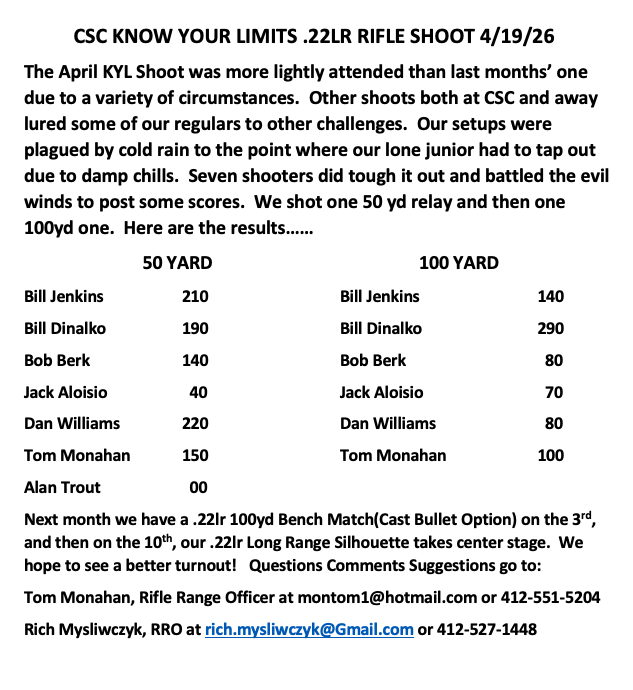 This shoot is designed around .22lr scoped rifles capable of shooting 8 aimed shots in less than one minute.